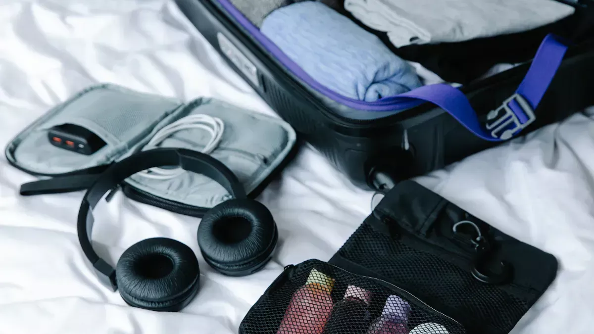 You want your makeup to arrive in perfect shape. Use tape or plastic wrap under bottle caps to stop spills. Store all liquids in zip-top bags. Wrap a small towel around your liquids bag for extra protection. Place cotton pads or bubble wrap between delicate items. These packing tricks help prevent breaks and leaks in your carry-on bag. With smart packing, you keep your makeup safe and your carry-on size organized.